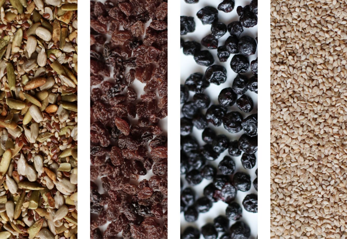 Arándanos azules Arándanos rojos Ciruela sin semilla Coco grueso Coco macaroon Coco medio Manzana cubo Pasas chicas